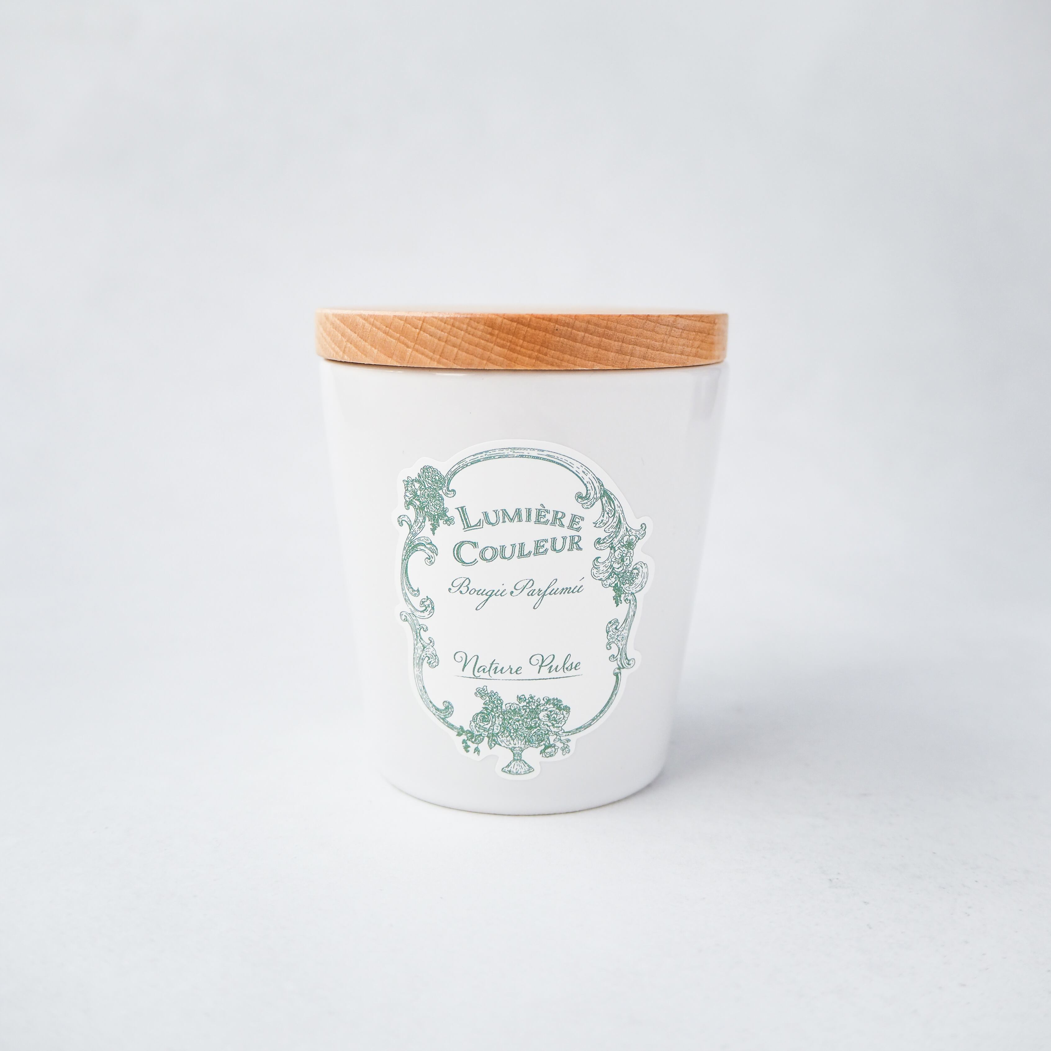 落ち着きのあるスモークホワイトの陶器に、ヨーロッパ産ブナ材のリッド(蓋)を合わせました。